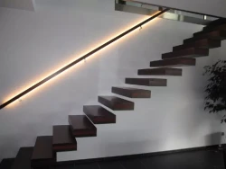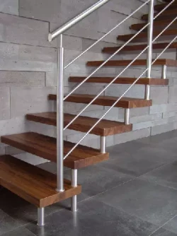 • Die Verwendung von Stufen aus Stahl und Glas im Innenbereich in architektonisch modernen Bauten wird zunehmend beliebter auch ein Mix aus Glas und Holz oder Aluminium zum Beispiel können wir Ihnen anbieten.